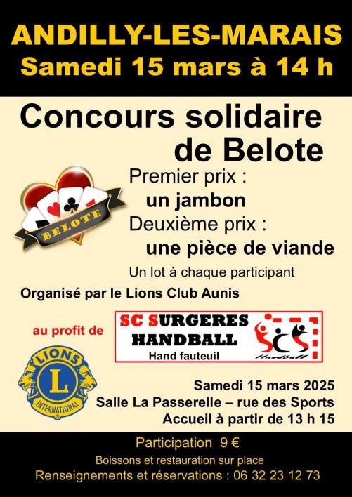 Ces deux manifestations se tiendront les 14 et 15 mars 2026 dans cette belle salle de La Passerelle à Andilly mais avant cela, les clubs Lions de La Rochelle et d'Aunis proposent